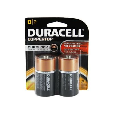 DURACELL MN1300B2Z Alkaline 1.5-Volt COPPERTOP D-Cell Battery (2-Pack) are made to get long-lasting, reliable power for the devices your business uses most. CopperTop batteries are engineered to deliver just the right level of power for most electronic needs. CopperTop batteries contain no added mercury and are rated for reliable operation in extremes from -4ยฐF to 129ยฐF. Individually date-coded and up to 10-year freshness guarantee in storage.