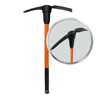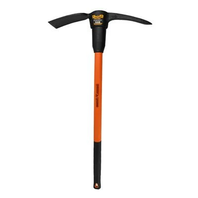 DuraDrive 36 in. 5 lb. Fibreglass Handle Forged Steel Head Pick and Mattock. Its durable and safe mechanical assembly results in an inseparable head and handle. The fibreglass handle won’t splinter and will last for years to come. It is ideal for digging and chopping roots and breaking up hard soil and clay.