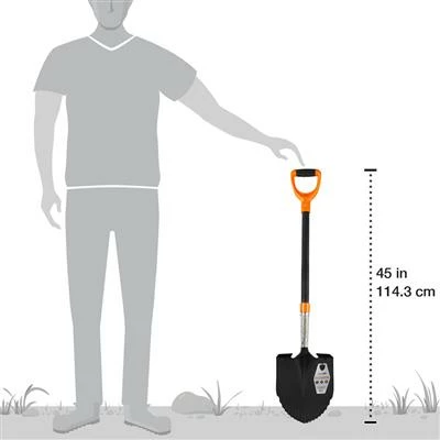 DuraDrive 45 in. Fibreglass D-Handle Round Point Carving Shovel has a 33-Inch handle which is made of fibreglass making it super strong and resistant to weather, chemicals and insects (unlike most wooden handles) and the D-Handle is easy to balance and control. The Round Point Shovel can be used for house and road construction, farming, landscaping, utilities and any other heavy-duty applications requiring the concerted use of force.