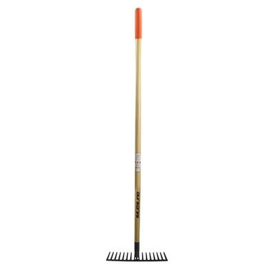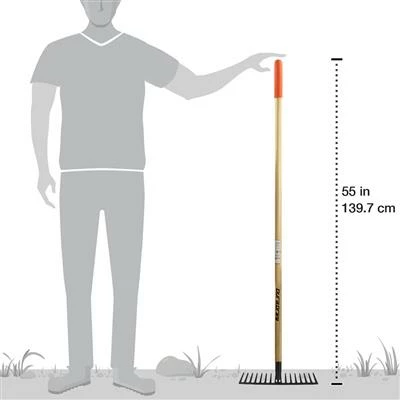 DuraDrive 55 in. 16-Tine Pine Wood Handle Forged Steel Head Stone Rake includes 16 extra-heavy straight tines, one-piece forged head and a pinewood handle. The rake is designed to level materials, in a variety of applications. The heavy-duty forged tines work hard to spread the material evenly. It is a heavy-duty rake that is great for contractor and professional use, as well as serious homeowners.