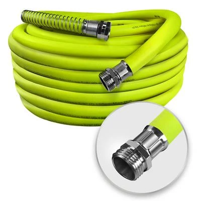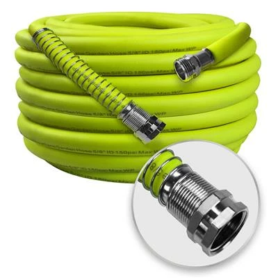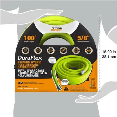 DuraDrive LG58100F 5/8 in. x 100 ft. Lime Hybrid Polyurethane Garden Hose is made from hybrid PU polymer. As a premium duty hose, it features all season flexibility up to -58F, kink resistant and excellent durability. This superior hose is extremely flexible, light-weight and never works against you. It is ideal for both general purpose and tough condition water applications. Handle hot water up to 180C.
