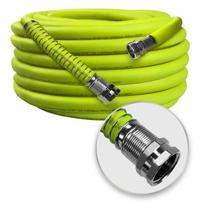 DuraDrive LG5875F 5/8 in. x 75 ft. Lime Hybrid Polyurethane Garden Hose is made from hybrid PU polymer. As a premium duty hose, it features all season flexibility up to -58F, kink resistant and excellent durability. This superior hose is extremely flexible, lightweight and never works against you. It is ideal for both general purpose and tough condition water applications. Handle hot water up to 180C.