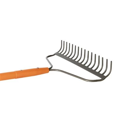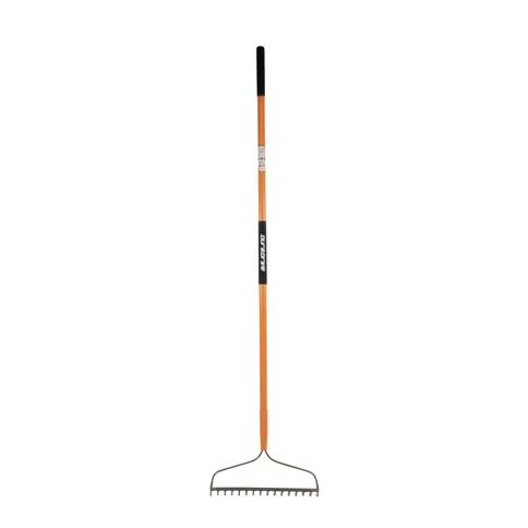 DuraDrive R101-16FL 68 in. 16-Tine Fibreglass Long Handle Hardened Steel Head Bow Rake is perfect for professionals and homeowners alike. This tool is ideal for loosening compact soil, spreading mulch or hay, collecting leaves or grass and leveling areas before planting.