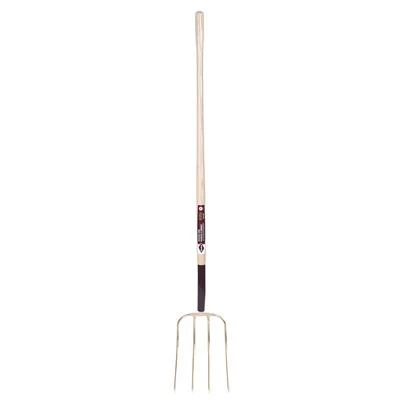 Garant G0413L 48 in. Wooden Handle 4-Tine Manure Pitchfork lifts, move and mix fertilizer, manure or compost. This tool is equipped with an ultra-robust head made of a single piece of forged and tempered steel. Its 4, 13? (33 cm) tines are sharp and narrow for better manipulation of the manure. This manure fork is designed especially for farmers looking for a robust, efficient and comfortable tool.