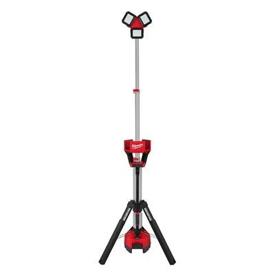 Milwaukee 2136-20 M18 ROCKET 18-Volt Lithium-Ion Cordless 6,000-Lumen Tower Light (Tool Only) is designed to deliver you a lighting solution that adapts, performs, and survives to the jobsite This light tower sets up in seconds to a max height of 7 ft. and collapses to less than 4 ft. for easy transportation and storage. The LED light head can be extended from 4-7 ft. to light overhead work or minimize shadows when casting shine downward. The multidirectional light head allows you to orient the three independently pivoting light heads to cast light in several directions. With an integrated AC plug , you can plug in the light with a standard extension cord and charge any M18 REDLITHIUM pack or use the USB port to charge your devices on site. Delivering 6,000 lumens, it fills up large areas with TRUEVIEW High Definition light. For optimized control over the output and run-time, the M18 ROCKET LED Light has three output settings. The LEDs never need to be replaced.