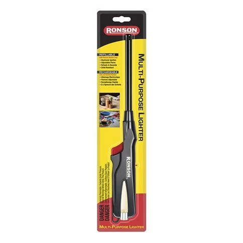 The Ronson Electronic Ignition Multi-Purpose Utility Lighter is great for a wide variety of household and outdoor purposes. This multi-use lighter has a see-through fuel tank and refuels in seconds with the Ronson Multi-Fill butane fuel for thousands of lights.