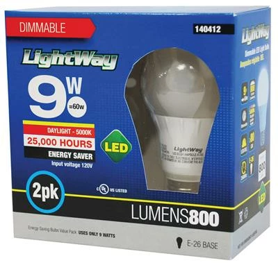 Toolway 140412 9-Watt 800-Lumen Dimmable LED Light Bulb (2-Pack) is a great source to enhance energy efficiency in your home or work environment. The 9-Watt LED bulb is equivalent to a remarkable 60-Watt. Featuring a bright 800 lumens, the dimmable bulbs allow you to have full control of the lighting and adjust to your preference.